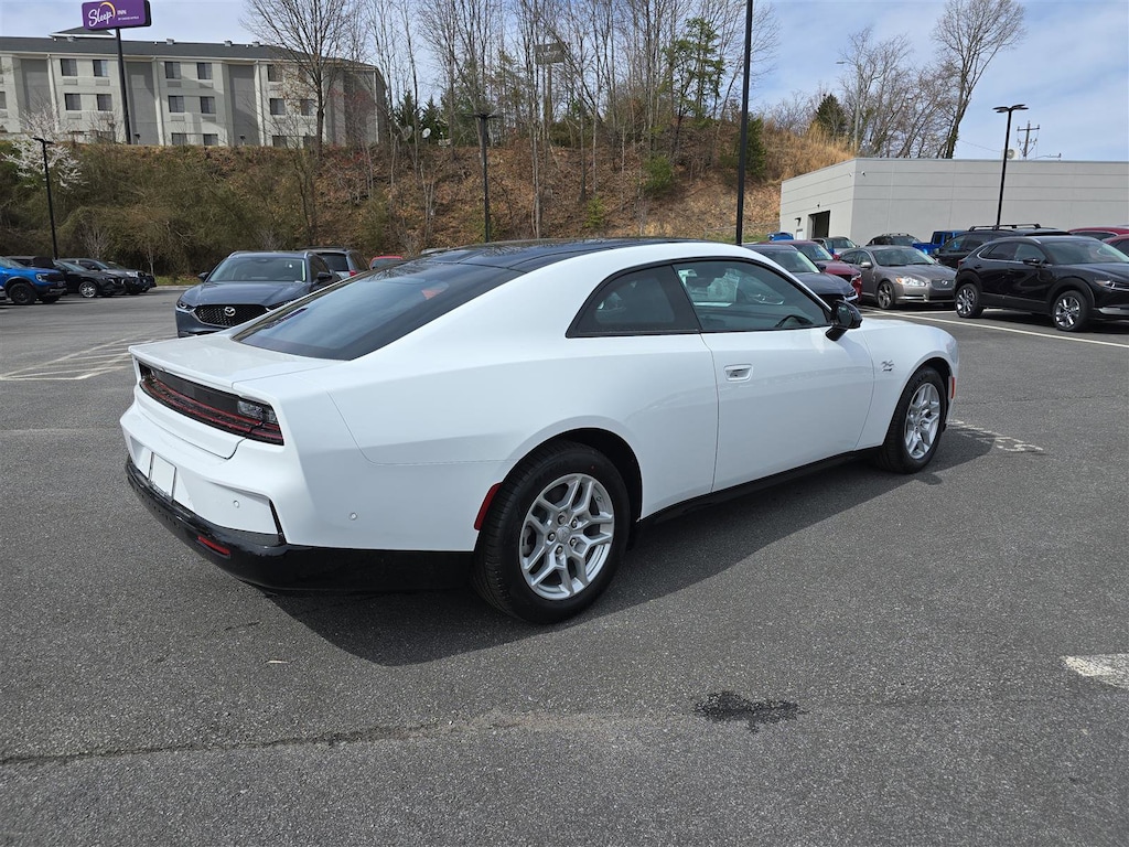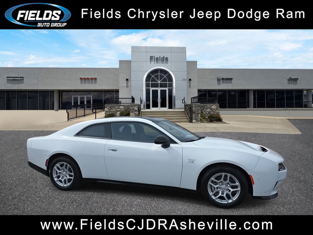 Chrysler Jeep Dodge Ram Asheville is pleased to offer this good-looking 2025 Dodge Charger R/T in Bright White Clearcoat Beautifully equipped with Quick Order Package 25M R/T, Two Tone Paint Group, Apple CarPlay/Android Auto, 10 Speakers, 18" x 8.5" Aluminum Wheels, 2-Way Manual Adjust Head Restraints, 2-Way Power Driver Lumbar Adjust, 4-Wheel Disc Brakes, 8-Way Power Driver Seat Adjust, ABS brakes, Air Conditioning, Alloy wheels, AM/FM radio: SiriusXM w/360L, Auto-dimming Rear-View mirror, Automatic temperature control, Black Seats, Brake assist, Bumpers: body-color, Compass, Delay-off headlights, Driver door bin, Driver vanity mirror, Dual front impact airbags, Dual front side impact airbags, Electronic Stability Control, Emergency communication system: Dodge Connect, Four wheel independent suspension, Front anti-roll bar, Front Bucket Seats, Front Center Armrest, Front dual zone A/C, Front reading lights, Fully automatic headlights, Garage door transmitter, Heated door mirrors, Heated Exterior Mirrors, Heated Front Seats, Heated front seats, Heated steering wheel, Illuminated entry, Knee airbag, Leather Shift Knob, Leatherette/Cloth Performance Seats, Low Back Bucket Seats, Low tire pressure warning, Navigation System, Nexen Brand Tires, Occupant sensing airbag, Outside temperature display, Overhead airbag, Overhead console, Panic alarm, ParkView Rear Back-Up Camera, Passenger door bin, Passenger vanity mirror, Power Adjust Mirrors, Power door mirrors, Power driver seat, Power steering, Power windows, Radio data system, Radio: Uconnect 5 Nav w/12.3" Display, Rear anti-roll bar, Rear reading lights, Rear seat center armrest, Rear window defroster, Remote keyless entry, Security system, Speed control, Split folding rear seat, Sport steering wheel, Steering wheel mounted audio controls, Telescoping steering wheel, Tilt steering wheel, Traction control, Trip computer, and Variably intermittent wipers!