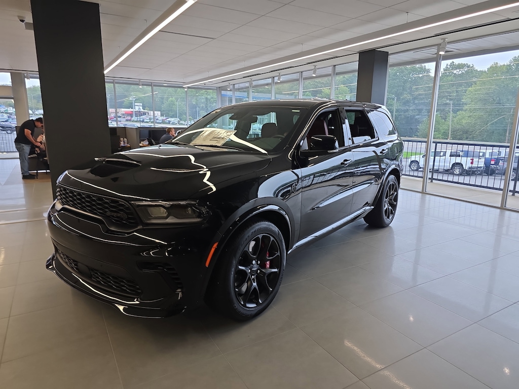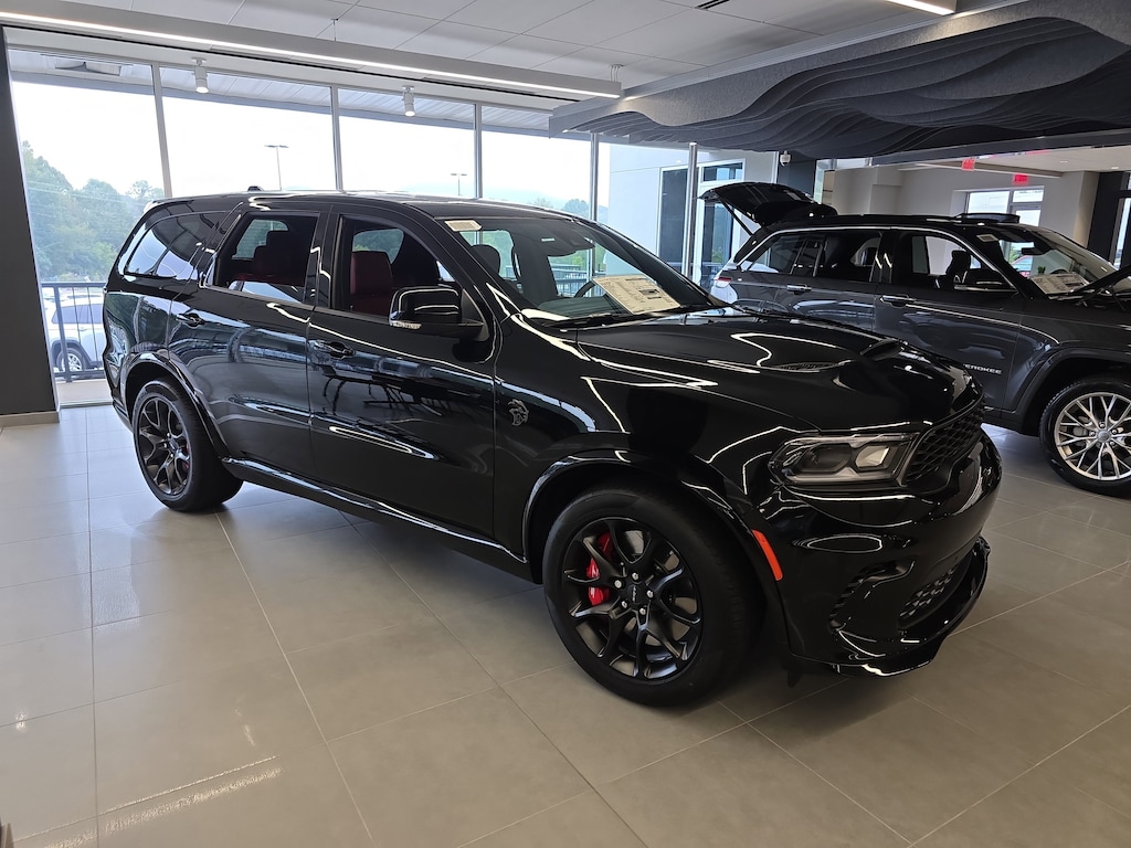 Chrysler Jeep Dodge Ram Asheville is delighted to offer this great 2025 Dodge Durango SRT Hellcat in DB Black Crystal Clearcoat Beautifully equipped with Trailer Tow Group IV (7 & 4 Pin Wiring Harness, Blind Spot w/Trailer Detection, Class IV Receiver Hitch, and Trailer Brake Control), #6 Seat Foam Cushion, 3.70 Rear Axle Ratio, 3rd row seats: split-bench, 4-Wheel Disc Brakes, 9 Speakers, ABS brakes, Adaptive suspension, Air Conditioning, Alloy wheels, AM/FM radio: SiriusXM w/360L, Apple CarPlay/Android Auto, Audio memory, Auto-dimming door mirrors, Auto-dimming Rear-View mirror, Automatic temperature control, Brake assist, Bumpers: body-color, Compass, Delay-off headlights, Driver door bin, Driver vanity mirror, Dual front impact airbags, Dual front side impact airbags, Electronic Stability Control, Emergency communication system: Dodge Connect, Four wheel independent suspension, Front anti-roll bar, Front Bucket Seats, Front Center Armrest w/Storage, Front dual zone A/C, Front reading lights, Fully automatic headlights, Garage door transmitter, Gloss Black Exterior Mirrors, Gray Metallic Badges, Heated door mirrors, Heated front seats, Heated rear seats, Heated steering wheel, Illuminated entry, Knee airbag, Leather Shift Knob, Leather steering wheel, Leather Trimmed Bucket Seats, Low tire pressure warning, Memory seat, Navigation System, Occupant sensing airbag, Outside temperature display, Overhead airbag, Overhead console, Panic alarm, ParkView Rear Back-Up Camera, Passenger door bin, Passenger vanity mirror, Power door mirrors, Power driver seat, Power Liftgate, Power passenger seat, Power steering, Power Sunroof, Power windows, Radio data system, Radio: Uconnect 5 Nav w/10.1" Display, Rain sensing wipers, Rear air conditioning, Rear anti-roll bar, Rear reading lights, Rear window defroster, Rear window wiper, Remote keyless entry, Security system, Speed control, Speed-sensing steering, Speed-Sensitive Wipers, Split folding rear seat, Spoiler, Sport steering wheel, Steering wheel mounted audio controls, Tachometer, Telescoping steering wheel, Tilt steering wheel, Traction control, Trip computer, Turn signal indicator mirrors, Variably intermittent wipers, Ventilated front seats, Voltmeter, Wheels: 20" x 10" Lights Out Aluminum, and Wheels: 20" x 10" Machine Face w/Dark Pockets!