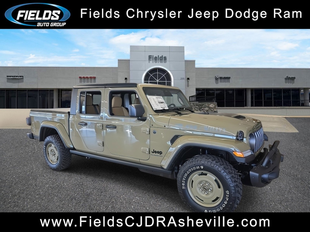 Chrysler Jeep Dodge Ram Asheville is proud to offer this stunning 2026 Jeep Gladiator Sport in 41 Beautifully equipped with Convenience Group (Air Conditioning with Auto Temp Control, Cluster 7.0" TFT Color Display, Corning Gorilla Glass, Daytime Running Lamp System, Emergency/Assistance Call, Front Door Locks 2-Door Passive Entry, Heated Front Seats, Heated Steering Wheel, Remote Start System, and Universal Garage Door Opener), Quick Order Package 24T Willys 41 (2-Piece Body Color Fender Flares, 4WD Willys '41 Tailgate Decal, 97 Mph Vehicle Max Speed Calibration, Advanced Brake Assist, Automatic Headlamps, Auxiliary Switches, Central ADAS Decision Module (CADM), Class IV Receiver Hitch, Cloth Low-Back Bucket Seats, Daytime Running Lamps LED Accents, Deep Tint Sunscreen Windows, E-Locker Rear Axle, Front Heavy Duty Red Accent Shock Absorbers, Front LED Fog Lamps, Full Speed Forward Collision Warning Plus, Green Soul Cloth Wrapped Mid-Bolster, Heavy-Duty Engine Cooling, Increased Travel Export Tuned Suspension, LED Premium Reflector Headlamps, LED Taillamps, MOPAR All-Weather Slush Mats, MOPAR Black Hood Graphic, MOPAR Triple Hoop Grille Guard, Off-Road Plus Mode, Performance Hood, Power Heated Mirrors, Premium Wrapped Steering Wheel, Protection Sill Rails, Rear Heavy Duty Red Accent Shock Absorbers, Security Alarm, Steel Front Bumper, Sun Visors with Illuminated Vanity Mirrors, Trailer Hitch Zoom, Wheels: 17" x 7.5" Fully Painted, Willys '41, Willys '41 Retro Edition Gladiator Decal, and Willys '41 US Edition U.S. Hood Decal), Technology Group (115V Auxiliary Power Outlet, 400W Inverter, Auto-Dimming Rear-View Mirror, Connected Travel and Traffic Services, GPS Navigation, HD Radio, Integrated Voice Command with Bluetooth, Media Hub with 2 Charge Only USBs, and Radio: Uconnect 5 Navigation with 12.3" Display), 110 Mph Vehicle Max Speed Calibration, 12.3" Touchscreen Display, 3.73 Rear Axle Ratio, 4-Wheel Disc Brakes, 4G LTE Wi-Fi Hot Spot, 8 Speakers, ABS brakes, Air Conditioning, Alexa Built-in, Alpine Premium Audio System, AM/FM radio: SiriusXM with 360L, Apple CarPlay, Apple CarPlay/Android Auto, Black 3-Piece Hard Top, Brake assist, Compass, Connectivity - US/Canada, Delay-off headlights, Driver door bin, Driver vanity mirror, Dual front impact airbags, Dual front side impact airbags, Electronic Stability Control, For Details, Visit DriveUconnect.com, Freedom Panel Storage Bag, Front anti-roll bar, Front Bucket Seats, Front Center Armrest w/Storage, Front fog lights, Front License Plate Bracket, Front reading lights, Google Android Auto, Illuminated entry, Integrated Center Stack Radio, Integrated roll-over protection, Low tire pressure warning, Manufacturer's Statement of Origin, MOPAR Plastic Door Sill Guards, MOPAR Soft Tri-Fold Tonneau Cover, MOPAR Spray in Bedliner, Normal Duty Suspension, Occupant sensing airbag, Outside temperature display, Overhead airbag, Panic alarm, ParkView Rear Back-Up Camera, Passenger door bin, Passenger vanity mirror, Power steering, Power windows, Radio data system, Radio: Uconnect 5 with 12.3" Display, Rear anti-roll bar, Rear reading lights, Rear Sliding Window, Rear Window Defroster, Remote keyless entry, SiriusXM Radio Service, SiriusXM with 360L, Speed control, Split folding rear seat, Steering wheel mounted audio controls, Tachometer, Telescoping steering wheel, Tilt steering wheel, Traction control, Trip computer, USB Host Flip, Variably intermittent wipers, Voltmeter, and Wheels: 17" x 7.5" Black Steel Styled!