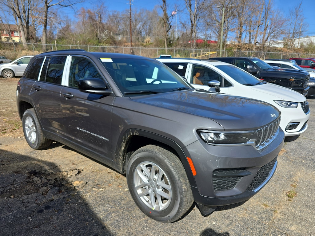 Chrysler Jeep Dodge Ram Asheville is pleased to offer this wonderful 2026 Jeep Grand Cherokee Laredo in Baltic Gray Metallic Clearcoat Beautifully equipped with Quick Order Package 22J Laredo X (115V Auxiliary Power Outlet, Heated Front Seats, Heated Steering Wheel, Power Liftgate, Power Sunroof, Rain Sensitive Windshield Wipers, Remote Start System, Secondary Active Grille Shutters, Selectable Tire Fill Alert, and Wireless Charging Pad), Trailer Tow Package (7 and 4-Pin Wiring Harness, Class IV Receiver Hitch, Heavy-Duty Engine Cooling, Rear Load Levelling Suspension, and Trailer Hitch Zoom), 3.45 Rear Axle Ratio, 4-Wheel Disc Brakes, 4G LTE Wi-Fi Hot Spot, 6 Speakers, ABS brakes, Air Conditioning, Alloy wheels, AM/FM radio: SiriusXM, Anti-whiplash front head restraints, Apple CarPlay, AppLink/Apple CarPlay and Android Auto, Automatic temperature control, Auxiliary Battery, Brake assist, Bumpers: body-color, Cloth Seats, Compass, Connectivity - US/Canada, Delay-off headlights, Disassociated Touchscreen Display, Driver door bin, Driver vanity mirror, Dual front impact airbags, Dual front side impact airbags, Electronic Stability Control, Emergency communication system, For Details, Visit DriveUconnect.com, Four wheel independent suspension, Front anti-roll bar, Front Bucket Seats, Front Center Armrest w/Storage, Front dual zone A/C, Front License Plate Bracket, Front reading lights, Fully automatic headlights, Global Telematics Box Module (TBM), Gloss Black Exterior Mirrors, Google Android Auto, GPS Antenna Input, Heated door mirrors, Heated Exterior Mirrors, Illuminated entry, Integrated Center Stack Radio, Integrated Voice Command with Bluetooth, Knee airbag, Low tire pressure warning, Manual Folding Exterior Mirrors, MyFlexCare Service Plan, Normal Duty Suspension, Occupant sensing airbag, Outside temperature display, Overhead airbag, Overhead console, Panic alarm, ParkView Rear Back-Up Camera, Passenger door bin, Passenger vanity mirror, Power door mirrors, Power driver seat, Power steering, Power windows, Radio data system, Radio: Uconnect 5 with 8.4" Display, Rear anti-roll bar, Rear reading lights, Rear window defroster, Rear window wiper, Remote keyless entry, Security system, Speed control, Speed-Sensitive Wipers, Split folding rear seat, Spoiler, Steering wheel mounted audio controls, Tachometer, Telescoping steering wheel, Tilt steering wheel, Traction control, Trip computer, USB Host Flip, Variably intermittent wipers, Voltmeter, and Wheels: 18" x 8.0" Fully Painted Aluminum!