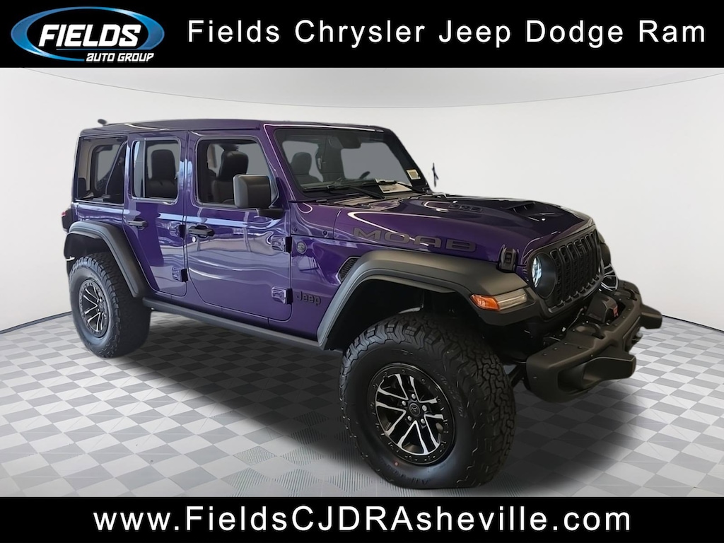 Chrysler Jeep Dodge Ram Asheville is pumped up to offer this superb 2026 Jeep Wrangler in reign Beautifully equipped with Quick Order Package 27X Moab (E-Locker Front Axle, Freedom Panel Storage Bag, Front Disconnecting Stabilizer Bar, Nappa Leather Seats, Rear Window Defroster, and Rear Window Wiper/Washer), 12.3" Touchscreen Display, 35" Tire Rubicon 392 Suspension, 4-Wheel Disc Brakes, 4.56 Rear Axle Ratio, 4G LTE Wi-Fi Hot Spot, 9 Speakers, ABS brakes, Air Conditioning, Alloy wheels, AM/FM radio: SiriusXM with 360L, Apple CarPlay, Apple CarPlay/Android Auto, Auto-dimming Rear-View mirror, Automatic temperature control, Aux Battery, Auxiliary Switches, Brake assist, Class II Receiver Hitch, Compass, Connectivity - US/Canada, Delay-off headlights, Driver door bin, Driver vanity mirror, Dual front impact airbags, Dual front side impact airbags, Electronic Stability Control, Emergency communication system: Jeep Connect, For More Info, Call 800-643-2112, Front anti-roll bar, Front Bucket Seats, Front Center Armrest w/Storage, Front dual zone A/C, Front fog lights, Front License Plate Bracket, Front reading lights, Fully automatic headlights, Garage door transmitter, Glass rear window, Google Android Auto, Heated door mirrors, Heated front seats, Heated steering wheel, Illuminated entry, Integrated Center Stack Radio, Integrated roll-over protection, Leather Shift Knob, Leather steering wheel, Low tire pressure warning, MOPAR All-Weather Floor Mats, MOPAR Multi-Function Accessory Rail, MOPAR Performance Satin Black Grille, Navigation System, Non-Lock Fuel Cap w/o Discriminator, Occupant sensing airbag, Outside temperature display, Overhead airbag, Panic alarm, ParkView Rear Back-Up Camera, Passenger door bin, Passenger vanity mirror, Power door mirrors, Power driver seat, Power passenger seat, Power steering, Power Top Quarter Window Storage Bag, Power windows, Radio data system, Radio: Uconnect 5 Nav w/12.3" Display, Rear anti-roll bar, Rear reading lights, Rear seat center armrest, Rear window defroster, Rear window wiper, Remote keyless entry, Removable Rear Quarter Windows, Security system, SiriusXM Radio Service, SiriusXM w/360L, Sky One-Touch Power Top, Speed control, Split folding rear seat, Sport steering wheel, Steering wheel mounted audio controls, Stop-Start Dual Battery System, Tachometer, Telescoping steering wheel, Tilt steering wheel, Traction control, Trip computer, Variably intermittent wipers, Voltmeter, Warn Winch, and Wheels: 17" x 8" Machined w/Black Pockets!