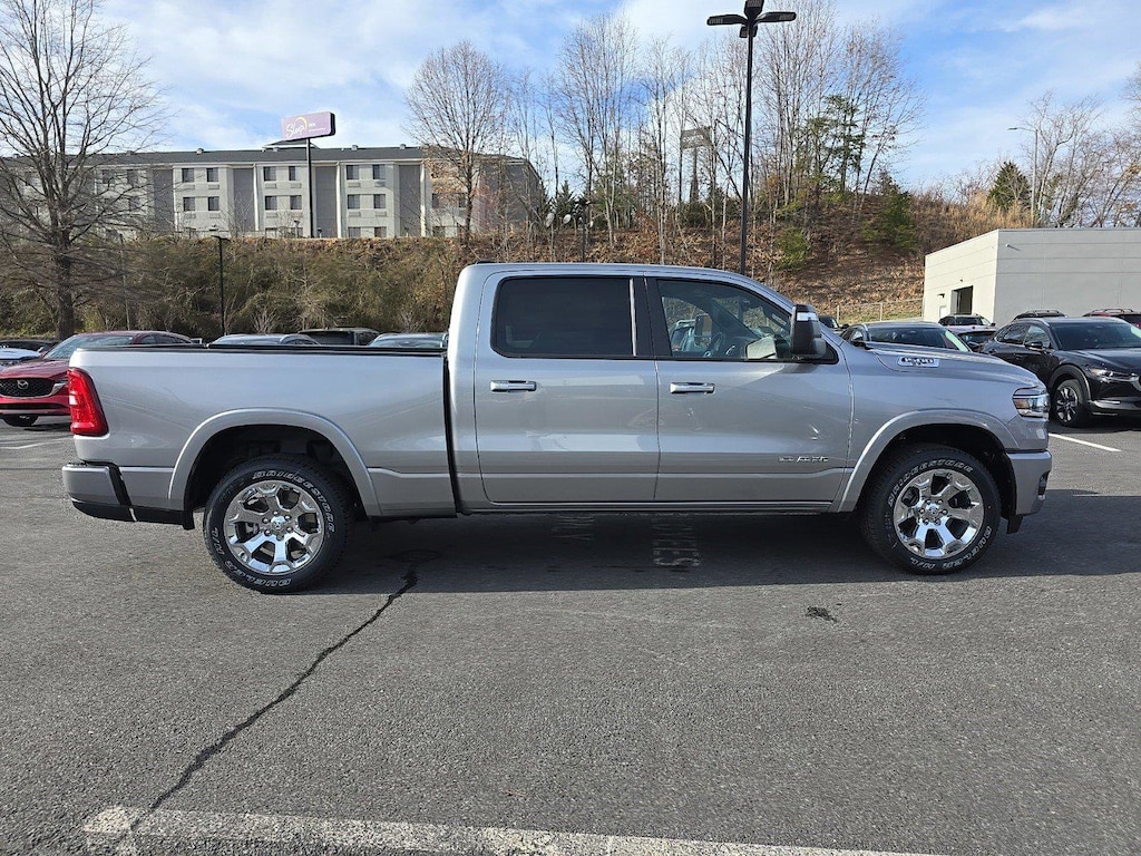 Chrysler Jeep Dodge Ram Asheville is pleased to offer this handsome 2025 Ram 1500 Big Horn/Lone Star in Billet Silver Metallic Clearcoat Beautifully equipped with Bed Utility Group (Exterior 115V AC Outlet, MOPAR 4 Adjustable Cargo Tie-Down Hooks, MOPAR Spray In Bedliner, and Pick-Up Box Lighting), Big Horn Level 1 Equipment Group (115V Auxiliary Power Outlet, 2nd Row In Floor Storage Bins, 400W Inverter, Auto Power-Folding Mirrors, Auto-Dimming Exterior Driver Mirror, Auto-Dimming Rear-View Mirror, Black Exterior Mirrors, Black Premium Power Mirrors, Convex Wide-Angle Exterior Mirror Insert, Exterior Mirrors Courtesy Lamps, Exterior Mirrors w/Heating Element, Exterior Mirrors w/Supplemental Signals, Glove Box Lamp, Heated Front Seats, Heated Steering Wheel, Leather Wrapped Steering Wheel, Power 2-Way Driver Lumbar Adjust, Power Adjust 8-Way Driver Seat, Power Adjustable Pedals, Rear Power Sliding Window, Rear Window Defroster, Steering Wheel Mounted Audio Controls, Sun Visors w/Illuminated Vanity Mirrors, and Universal Garage Door Opener), Quick Order Package 21Z Big Horn, Sport Appearance Package (3 Rear Seat Head Restraints, 4 Way Front Headrests, Black Interior Accents, Body Color Door Handles, Body Color Front Bumper, Body Color Rear Bumper w/Step Pads, Body Color Tailgate Handle, Bucket Seats, Deluxe Cloth Bucket Seats, Front Seat Back Map Pockets, Full Length Floor Console, Grille Surround 1 Body Color Texture 1 Black, Manual Adjust 4-Way Front Passenger Seat, RAM Grille Badge - Chrome, Rear 60/40 Folding Seat, and Rear Center Armrest), Trailer Tow Group (Accent Color Tailgate Handle, Black Trailer Tow Power Mirrors, Manual Folding Exterior Mirrors, Manual Telescoping Mirrors, Mirror Clearance/Running Lights, Power-Adjustable Convex Aux Mirrors, Trailer Brake Control, Trailer Reverse Steering Control, Trailer Tire Pressure Monitoring System, and Trailer Tow Mirrors), 4-Wheel Disc Brakes, 4G LTE Wi-Fi Hot Spot, 6 Speakers, ABS brakes, Air Conditioning, Alloy wheels, AM/FM radio, Anti-Spin Differential Rear Axle, Apple CarPlay/Android Auto, Auto High-beam Headlights, Brake assist, Bumpers: chrome, Cloth Bench Seat, Compass, Connectivity - US/Canada, Delay-off headlights, Driver door bin, Dual front impact airbags, Dual front side impact airbags, Electronic Stability Control, Front anti-roll bar, Front Center Armrest w/Storage, Front fog lights, Front reading lights, Front wheel independent suspension, Fully automatic headlights, GPS Antenna Input, Heated door mirrors, Illuminated entry, Integrated Voice Command w/Bluetooth, Low tire pressure warning, Manufacturer's Statement of Origin, MOPAR Front & Rear Rubber Floor Mats, Occupant sensing airbag, Outside temperature display, Overhead airbag, Overhead console, Panic alarm, ParkView Rear Back-Up Camera, Passenger door bin, Passenger vanity mirror, Power door mirrors, Power steering, Power windows, Radio data system, Radio: Uconnect 5 W w/8.4" Display, Rear anti-roll bar, Rear seat center armrest, Rear step bumper, Remote keyless entry, Speed control, Split folding rear seat, Tachometer, Telescoping steering wheel, Tilt steering wheel, Traction control, Trip computer, USB Host Flip, Variably intermittent wipers, Voltmeter, Wheels: 18" x 8" Cast-Aluminum Painted, and Wheels: 20" x 9" Aluminum Chrome Clad (WRK)!