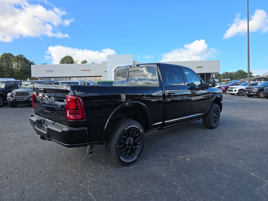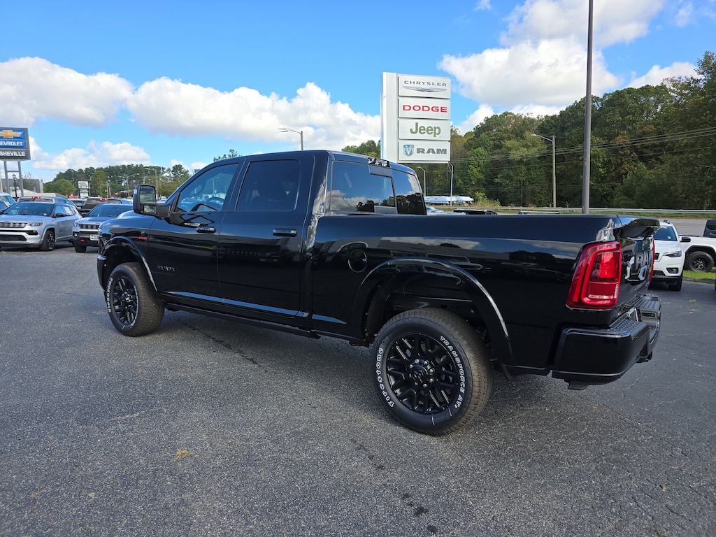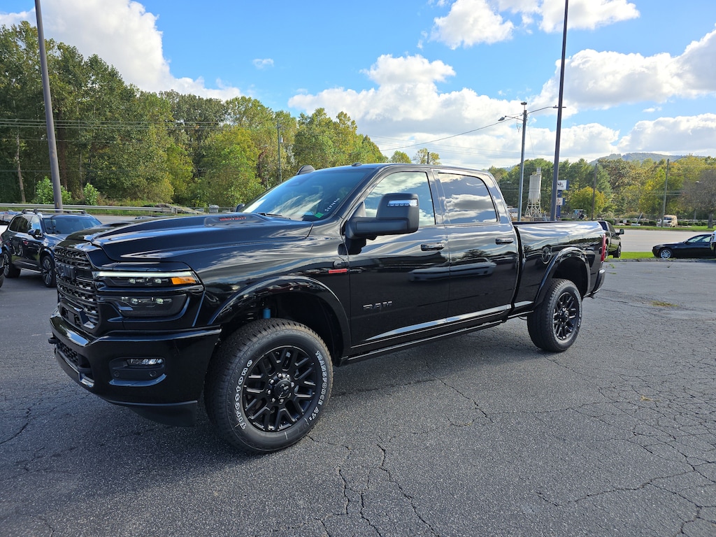 Chrysler Jeep Dodge Ram Asheville is proud to offer this charming 2025 Ram 2500 Limited in Diamond Black Crystal Pearlcoat Beautifully equipped with 5th Wheel/Gooseneck Towing Prep Group (Pickup Box, Vendor Painted Cargo Box, and Vendor Painted Cargo Box Tracking), Limited Level 1 Equipment Group (Active Lane Management System, Adaptive Steering System, Anti-Spin Differential Rear Axle, CTR Stop Lamp w/Cargo View Camera, Digital Rearview Mirror, Drowsy Driver Detection, LED Bed Lighting, MOPAR Spray In Bedliner, Power Deployable Running Boards, Surround View Camera System, Traffic Sign Recognition, Trailer Reverse Guidance, and Trailer Tire Pressure Monitoring System), Night Edition (Black Exterior Truck Badging, Black Grille Limited, Black Interior Accents, Black Wheel Center Hub, Body Color Grille Surround, Sport Performance Hood, and Wheels: 20" x 8.0" Night Edition Black Aluminum), Off Road Package (Front Performance Tuned Shock Absorbers and Rear Performance Tuned Shock Absorbers), Quick Order Package 24M Limited, Navigation System, 115V Auxiliary Rear Power Outlet, 17 Speakers, 2 Way Rear Headrest Seat, 3.42 Axle Ratio, 3.73 Axle Ratio, 4 Way Front Headrests, 4-Wheel Disc Brakes, ABS brakes, Adjustable pedals, Air Conditioning, Alloy wheels, AM/FM radio: SiriusXM with 360L, Apple CarPlay/Android Auto, Audio memory, Auto High-beam Headlights, Auto-dimming door mirrors, Auto-dimming Rear-View mirror, Automatic temperature control, Bodyside moldings, Brake assist, Bucket Seats, Bumpers: body-color, Compass, Dash Pass Thru Wire Circuits, Delay-off headlights, Driver door bin, Driver vanity mirror, Dual Alternators Rated at 480 Amps, Dual front impact airbags, Dual front side impact airbags, Dual Wireless Charging Pad, Electronic Stability Control, Folding Flat Load Floor Storage, Front anti-roll bar, Front Bucket Seats, Front Center Armrest w/Storage, Front dual zone A/C, Front fog lights, Front reading lights, Front Seat Back Map Pockets, Full-Length Premium Upgraded Floor Console, Fully automatic headlights, Garage door transmitter, Genuine wood console insert, Genuine wood dashboard insert, Genuine wood door panel insert, harman/kardon® Speakers, Heated door mirrors, Heated Front Seats, Heated front seats, Heated rear seats, Heated Second Row Seats, Heated Steering Wheel, Heated steering wheel, High Back Seats, I/P Mounted Auxiliary Switches, Illuminated entry, Leather steering wheel, Low tire pressure warning, Manufacturer's Statement of Origin, Memory seat, Occupant sensing airbag, Outside temperature display, Overhead airbag, Overhead console, Panic alarm, ParkView Rear Back-Up Camera, Passenger door bin, Passenger vanity mirror, Pedal memory, Power 2-Way Driver Lumbar Adjust, Power 2-Way Passenger Lumbar Adjust, Power Adjust 8-Way Driver Seat, Power Adjust 8-Way Front Passenger Seat, Power door mirrors, Power driver seat, Power passenger seat, Power steering, Power windows, Radio data system, Radio: Uconnect 5 Nav w/14.4" Display, Radio/Driver Seat/Mirrors/Pedals Mem