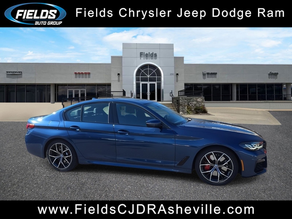 Our Pricing Mission at Fields Auto Group is to present market value pricing to all our customers. We monitor all our prices in Asheville and the surrounding area using a tool that allows us to compare prices on our vehicles to inventory at all our competitors. We monitor our prices daily to ensure our customers are getting the best value on a new or preowned vehicle. Chrysler Jeep Dodge Ram Asheville is honored to offer this wonderful 2023 BMW 5 Series M550i xDrive in Phytonic Blue Metallic Beautifully equipped with Connected Package Pro, Driving Assistance Professional Package (Active Driving Assistant Pro and Extended Traffic Jam Assistant), Executive Package (Ceramic Controls, Head-Up Display, and Power Rear Sunshade & Rear Side Window Shades), M Sport Package Pro, Shadowline Package (Extended Shadowline Trim, M Shadowline Lights, and M Sport Brakes w/Red Calipers), 16 Speakers, 4-Wheel Disc Brakes, Adaptive suspension, Air Conditioning, Auto High-beam Headlights, Auto-dimming door mirrors, BMW M 50 Years Emblems, Dakota Leather Upholstery, Electronic Stability Control, Exterior Parking Camera Rear, Four wheel independent suspension, Front & Rear Heated Seats, Front Bucket Seats, Front Center Armrest, Front reading lights, Front Ventilated Seats, Garage door transmitter, Gray Poplar Wood Trim, harman/kardon Surround Sound System, Heated Front Seats, Heated front seats, Heated Steering Wheel, Illuminated entry, Leather Shift Knob, Leather steering wheel, Live Cockpit Pro, M Sport Brakes w/Red Calipers (DISC), Memory seat, Multi-Contour Seats, Navigation System, Occupant sensing airbag, Outside temperature display, Panic alarm, Passenger vanity mirror, Power door mirrors, Power driver seat, Power Front Seats, Power moonroof, Power steering, Power windows, Rain sensing wipers, Rear anti-roll bar, Rear reading lights, Rear seat center armrest, Rear window defroster, Remote keyless entry, Remote Services, Security system, Speed control, Speed-sensing steering, Split folding rear seat, Sport steering wheel, Steering wheel memory, Steering wheel