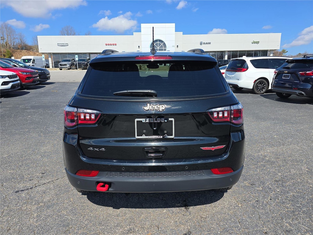 Our Pricing Mission at Fields Auto Group is to present market value pricing to all our customers. We monitor all our prices in Asheville and the surrounding area using a tool that allows us to compare prices on our vehicles to inventory at all our competitors. We monitor our prices daily to ensure our customers are getting the best value on a new or preowned vehicle. Chrysler Jeep Dodge Ram Asheville is very proud to offer this stunning-looking 2024 Jeep Compass Trailhawk in Diamond Black Crystal Pearlcoat Beautifully equipped with Quick Order Package 29E, 10.1" Touchscreen Display, 4-Wheel Disc Brakes, 4.398 Final Drive Ratio, 4G LTE Wi-Fi Hot Spot, 6 Speakers, ABS brakes, Air Conditioning, Alloy wheels, AM/FM radio: SiriusXM, Auto High-beam Headlights, Auto-dimming Rear-View mirror, Automatic temperature control, Brake assist, Bumpers: body-color, Compass, Delay-off headlights, Driver door bin, Driver vanity mirror, Dual front impact airbags, Dual front side impact airbags, Electronic Stability Control, Emergency communication system: Jeep Connect, For Details, Visit DriveUconnect.com, For More Info, Call 800-643-2112, Four wheel independent suspension, Front anti-roll bar, Front Bucket Seats, Front Center Armrest w/Storage, Front dual zone A/C, Front fog lights, Front License Plate Bracket, Front reading lights, Fully automatic headlights, Global Telematics Box Module (TBM), Heated door mirrors, Illuminated entry, Knee airbag, Leather Shift Knob, Leather steering wheel, Low tire pressure warning, Occupant sensing airbag, Outside temperature display, Overhead airbag, Overhead console, Panic alarm, ParkView Rear Back-Up Camera, Passenger door bin, Passenger vanity mirror, Power door mirrors, Power steering, Power windows, Premium Cloth/Leather Trim Bucket Seats, Radio: Uconnect 5 w/10.1" Display, Rain sensing wipers, Rear anti-roll bar, Rear seat center armrest, Rear window defroster, Rear window wiper, Remote keyless entry, Security system, SiriusXM Guardian - Included Trial (B), SiriusXM Radio Service, Speed control, Split folding rear seat, Spoiler, Steering wheel mounted audio controls, Tachometer, Telescoping steering wheel, Tilt steering wheel, Traction control, Trip computer, Turn signal indicator mirrors, Variably intermittent wipers, and Wheels: 17" x 6.5" Painted Black Aluminum!