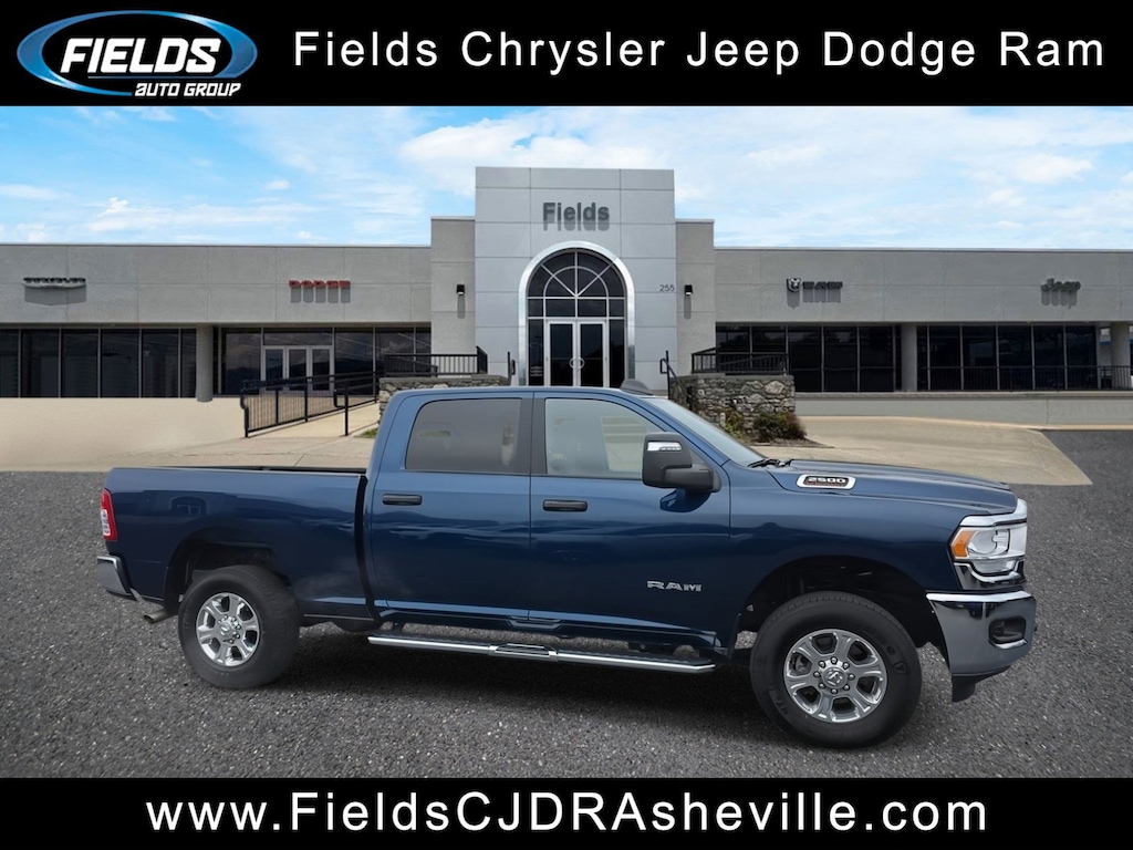 Our Pricing Mission at Fields Auto Group is to present market value pricing to all our customers. We monitor all our prices in Asheville and the surrounding area using a tool that allows us to compare prices on our vehicles to inventory at all our competitors. We monitor our prices daily to ensure our customers are getting the best value on a new or preowned vehicle. Chrysler Jeep Dodge Ram Asheville is delighted to offer this wonderful 2024 Ram 2500 Big Horn in Patriot Blue Pearlcoat Beautifully equipped with Bed Utility Group (LED Bed Lighting, MOPAR Deployable Bed Step, and MOPAR Spray In Bedliner), Level 1 Equipment Group (2 Way Rear Headrest Seat, 2nd Row In Floor Storage Bins, 4 Way Front Headrests, 40/20/40 Split Bench Seat, 4G LTE Wi-Fi Hot Spot, 8.4" Touchscreen Display, Apple CarPlay, Auto Power-Folding Mirrors, Big Horn IP Badge, Black Exterior Mirrors, Bluetooth Handsfree Phone & Audio, Center Hub, Connectivity - US/Canada, Dual Glove Boxes, Exterior Mirrors Courtesy Lamps, Exterior Mirrors w/Heating Element, Exterior Mirrors w/Supplemental Signals, Foam Bottle Insert (Door Trim Panel), Footwell Courtesy Lamp, For Details, Visit DriveUconnect.com, For More Info, Call 800-643-2112, Forward & Reverse Utility Lights, Front Armrest w/Cupholders, Front Center Seat Cushion Storage, Front Fog Lamps, Front Seat Back Map Pockets, Global Telematics Box Module (TBM), Glove Box Lamp, Google Android Auto, GPS Antenna Input, Integrated Center Stack Radio, Integrated Voice Command w/Bluetooth, Leather Wrapped Steering Wheel, Locking Lower Glove Box, Manual Adjust 4-Way Front Passenger Seat, Mirror Running Lights, Power 2-Way Driver Lumbar Adjust, Power Adjust 8-Way Driver Seat, Power Adjust Mirrors, Power Adjustable Convex Aux Mirrors, Power Heated Fold Telescope Mirrors, Power Telescoping Mirrors, Rear 60/40 Folding Seat, Rear Dome w/On/Off Switch Lamp, Remote USB Port - Charge Only, Selectable Tire Fill Alert, SiriusXM Radio Service, SiriusXM Satellite Radio, Steering Wheel Mounted Audio Controls, Storage Tray, and Wheels: 18" x 8.0" Polished Aluminum), Protection Group (Tow Hooks), Quick Order Package 2GZ Big Horn, 3.73 Axle Ratio, 4-Wheel Disc Brakes, 6 Speakers, 9 Alpine Speakers w/Subwoofer, ABS brakes, Active Noise Control System, Air Conditioning, Anti-Spin Differential Rear Axle, Brake assist, Bumpers: chrome, Center Stack Storage Drawer, Chrome Flat Cab-Length Side Steps, Cloth 40/20/40 Bench Seat, Compass, Delay-off headlights, Driver door bin, Dual front impact airbags, Dual front side impact airbags, Electronic Stability Control, Electronically Controlled Throttle, Emergency communication system: SiriusXM Guardian, Front anti-roll bar, Front Center Armrest w/Storage, Front License Plate Bracket, Front reading lights, Fully automatic headlights, Heated door mirrors, Illuminated entry, Low tire pressure warning, Manual Adjust 4-Way Driver Seat, Manufacturer's Statement of Origin, Occupant sensing airbag, Outside temperature display, Overhead airbag, Overhead console, Panic alarm, ParkView Rear Back-Up Camera, Passenger door bin, Passenger vanity mirror, Power door mirrors, Power steering, Power windows, Premium Cloth 40/20/40 Bench Seat (DISC), Radio data system, Radio: Uconnect 3 w/5" Display, Radio: Uconnect 5 W w/8.4" Display, Rear anti-roll bar, Rear Folding Seat, Rear seat center armrest, Rear step bumper, Remote keyless entry, Speed control, Tachometer, Tilt steering wheel, Tip Start, Traction control, Trip computer, Turn signal indicator mirrors, Variably intermittent wipers, Voltmeter, and Wheels: 18" x 8.0" Steel Chrome Clad!